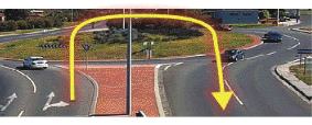 左转时,从左车道接近环形交叉路,并打左转信号,在转弯时继续打信号。以左车道驶出环形交叉路。