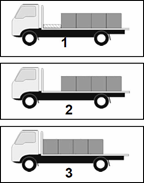 阻挡是将货物固定在挡板或隔板上,这是最重要的部分。在左侧图中,如果轴重未超载,选项3是放置货物的最佳方式,最笨重的物品靠在隔板上,以防止它们在制动时移动,这称为货物移动。选项1也被阻挡,但在后部有更多的重量,这可能使转向效果降低,而选项2没有被阻挡,货物在制动时可能滑动向前。